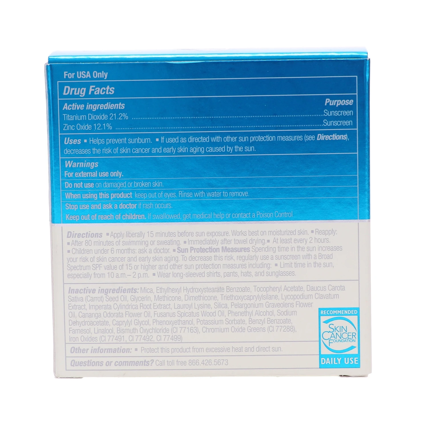 | How To Apply | Apply over face each morning with a brush or sponge. Reapply after 80 minutes of swimming or sweating. |