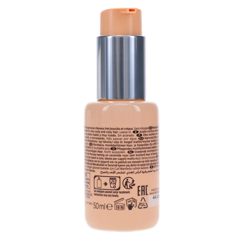 | How To Apply | As a Leave-In Treatment: -Apply one to two pumps on wet or dry hair after shampoo and conditioner or mask. -Follow with Curl Manifesto Gel-Defining Cream (sold separately). -Air-dry or use a diffuser. To Condition the Scalp: -Part hair into sections to reveal the scalp. -Gently massage in the product. As a Pre-Shampoo Hair Treatment: -Gently work through dry hair. -Allow to act for at least five minutes before washing hair. -Complete routine with Kérastase’s full Curl Manifesto collection (sold separately) for maximum hydrating and curl-enhancing benefits. -Avoid contact with eyes. -If contact occurs, rinse immediately and thoroughly. |