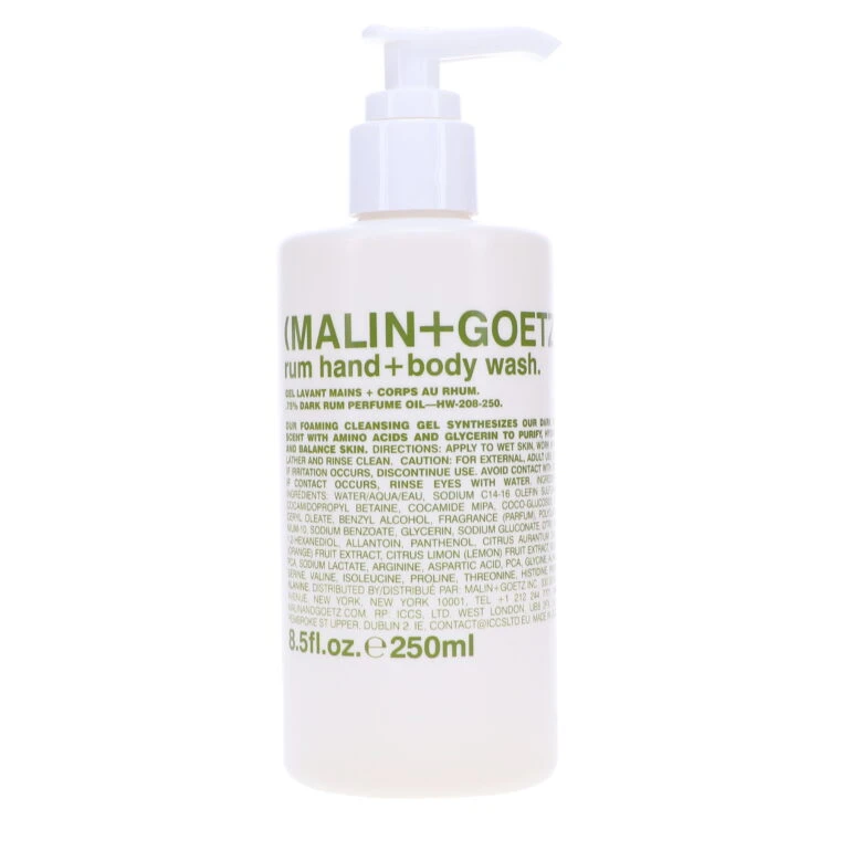 Improve your life by improving your skin care products with Malin+Goetz Rum Hand+Body Wash 8.5 oz. Gone are the days of stressing out your skin while removing dirt and oil. Now your hands and body can enjoy a clean with a sweet and spicy rum scent guaranteed to please.