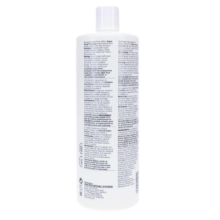 Over processing is not the only threat to damaged hair, and unnoticeable daily influences can cause just as much harm. Paul Mitchell Strength Super Strong Daily Conditioner 33.8OZ/1000mL strengthens and protects your strands from destructive daily contaminates. The unique Super Strong formula strengthens and reinforces your hair from the inside, creating the strongest hair of your life. Added gentle cleansing agents deeply penetrate strands to infuse optimal moisture into your hairstyle.