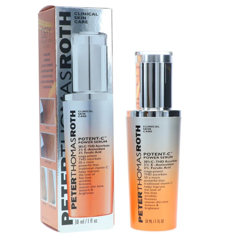 Vitamin C plays a critical role in skin health, and Peter Thomas Roth Potent C Serum provides a high concentration in a treatment gentle enough not to irritate sensitive skin. This serum contains THD Ascorbate, which is up to 50 times more potent than standard sources of Vitamin C found in other skincare products.