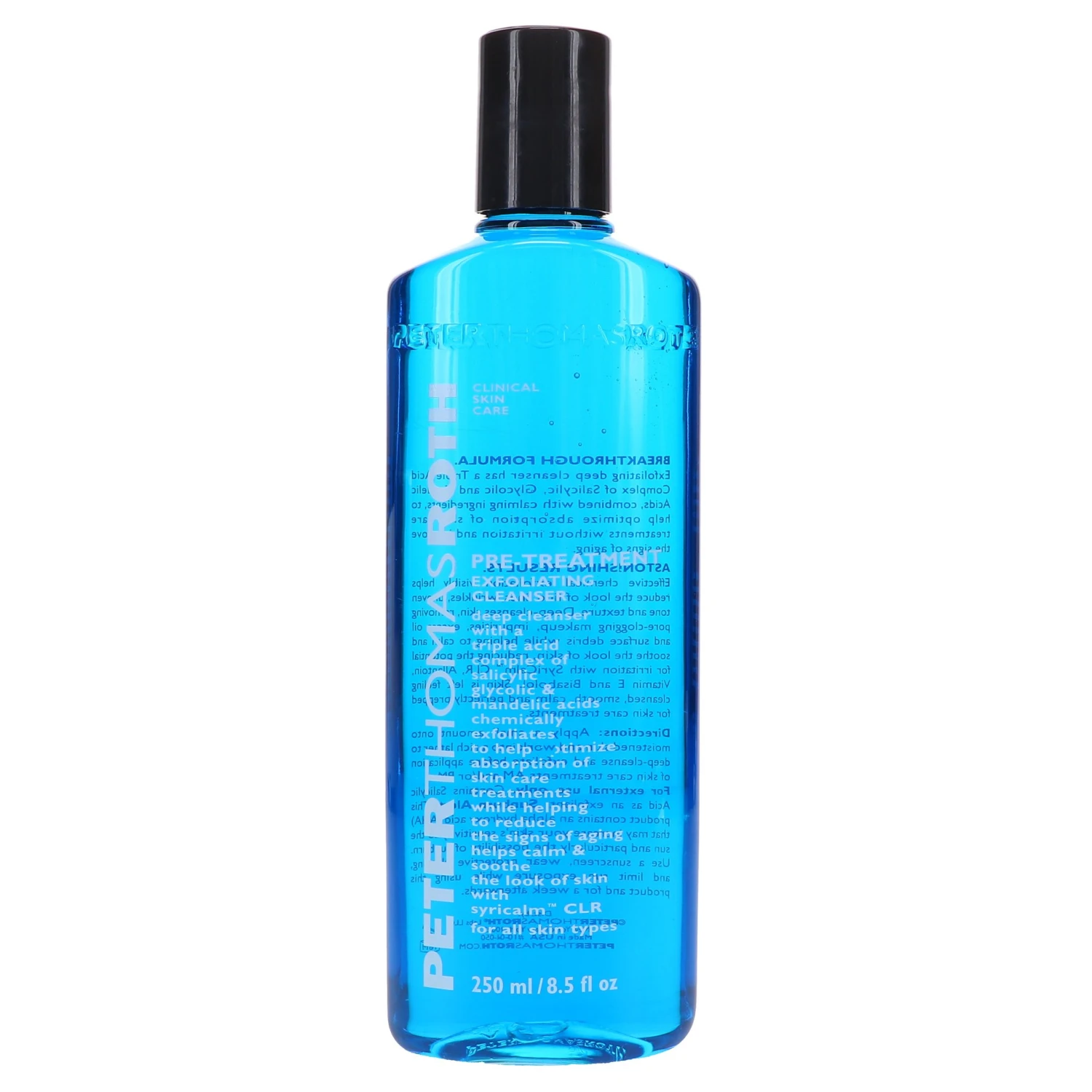 Discover Peter Thomas Roth Pre-Treatment Exfoliating Cleanser and take your skincare routine to the next level. Our exfoliating deep cleanser is enriched with a Triple Acid Complex of Salicylic, Glycolic, and Mandelic Acids, as well as calming ingredients, to help you achieve radiant results without irritation. With the added bonus of improving signs of aging, this formula will assist in optimizing absorption of skin care treatments while leaving your complexion feeling smooth and refreshed. To use, apply a small amount to dampen skin and work into a lather. Use before skin care treatments in the morning or evening for best results. Get ready to experience softer, brighter looking skin––you won’t be disappointed!