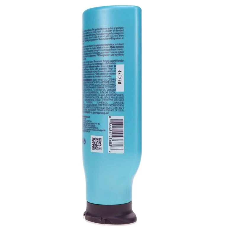 Pureology strength cure concentrated daily conditioner for micro-scarred, damaged colour-treated hair. Instantly conditions and detangles and improves hair’s touch and light reflection. 97 percent improved strength after only 1 use of conditioner.