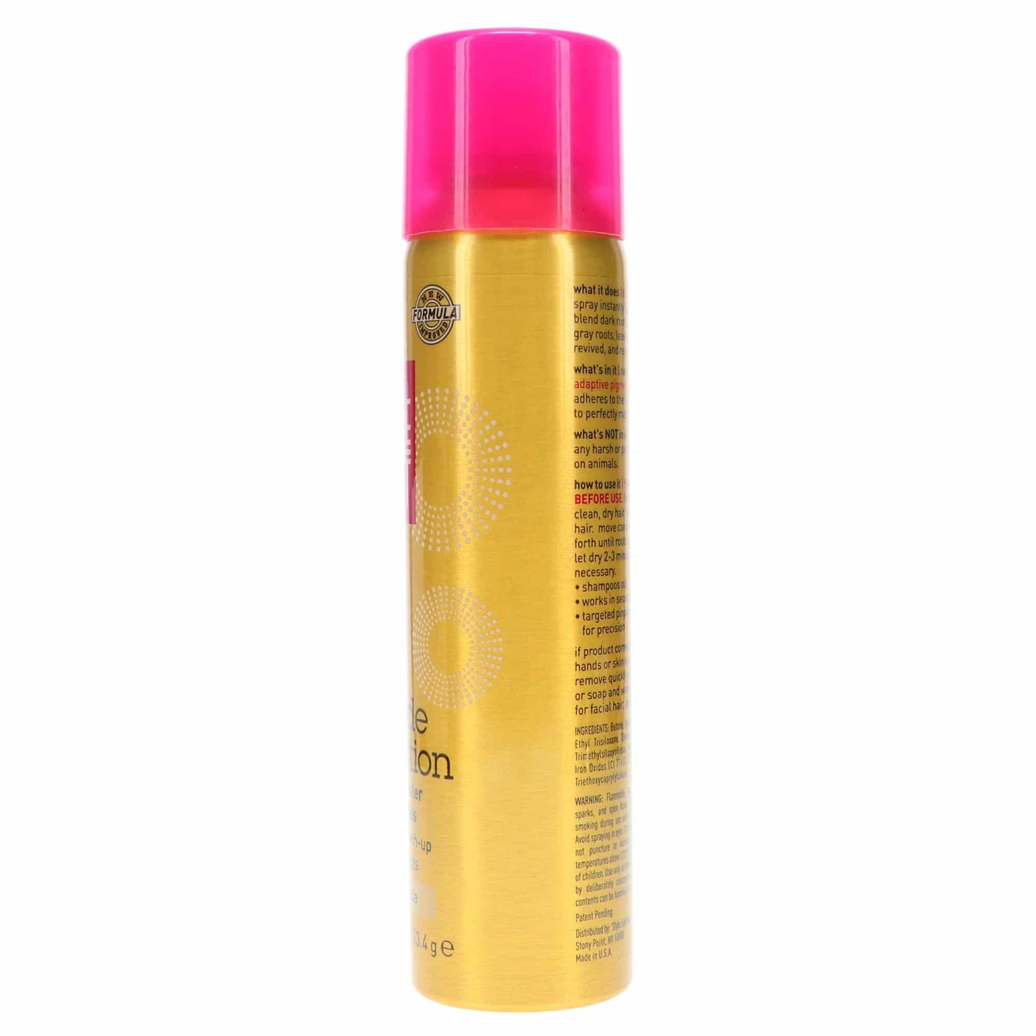 Prior to applying, be sure to shake the spray very well. Apply directly to roots from two to three inches away. After your grays are completely covered, let product sit for two to three minutes. Product comes out with shampoo.
